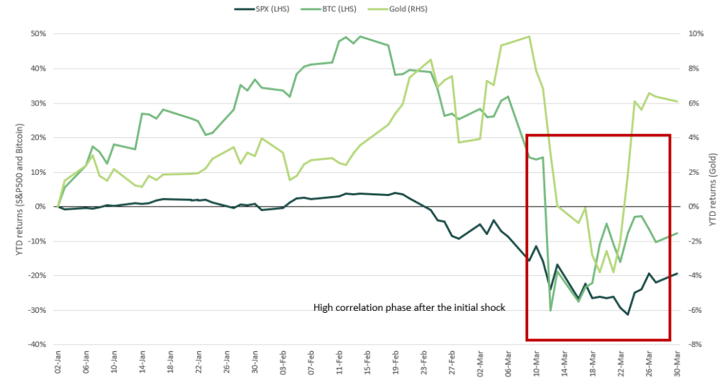We analyse three examples of financial stress with a focus on gold, an asset revered as a classic diversifier and one that is close in spirit to the notion of outside money, of which bitcoin is part. We presented this in the previous Digital Investor: Bitcoin is dead, long live bitcoin.