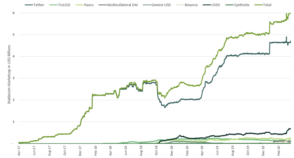The market capitalisation of stablecoins has been increasing steadily. In 2020 stablecoins saw a steady rise of 20%, and during the recent sell-off, the demand for stablecoins has remained solid. Stablecoins offer easy convertibility into other cryptocurrencies compared to fiat on-ramps.