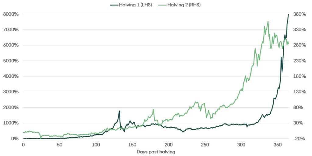 Figure 1 – Price-performance post-halving events