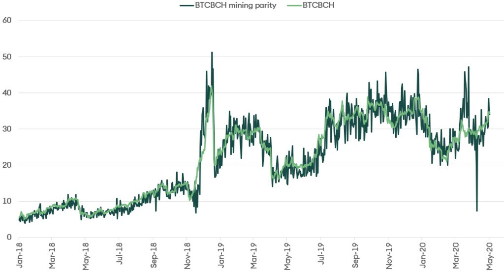 Figure 14: BTCBCH and the mining parity