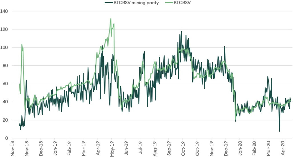 Figure 15: BTCBSV and the mining parity