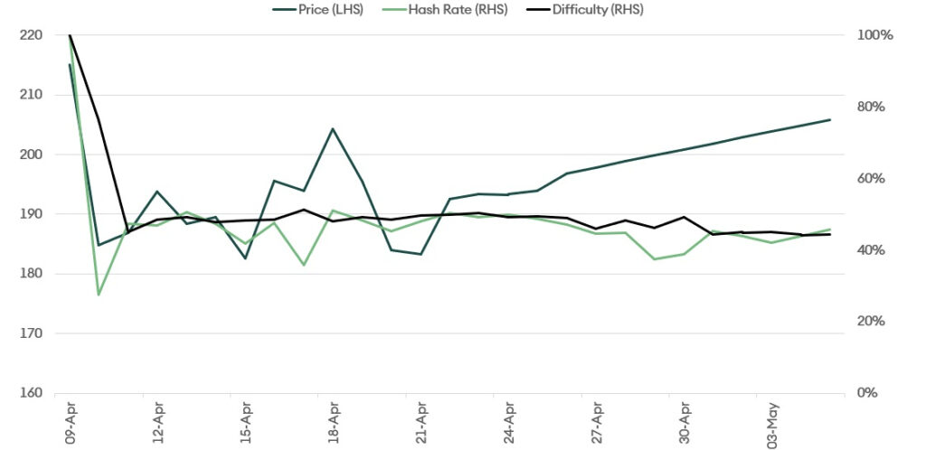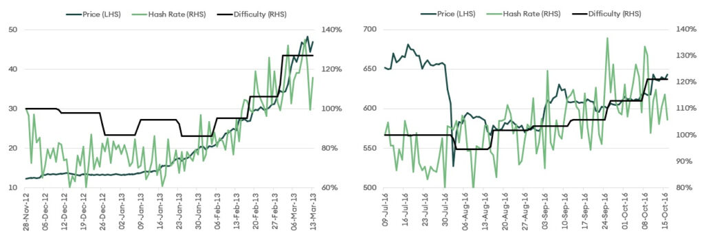 Figure 2– Hashrate performance post-halving events