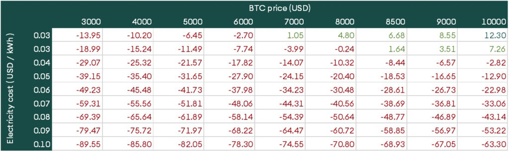 Figure 10– BTC at USD 8800 and a total network hashrate of 120,000,000 Th/s