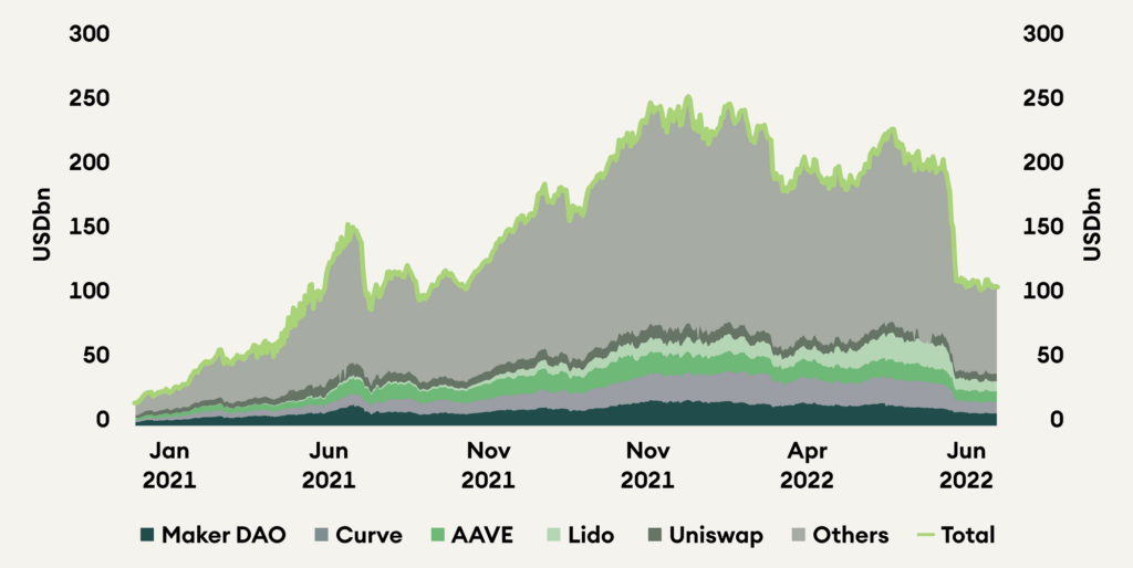 Figure 6: Total Value Locked (TVL) across chains in DeFi, with key contributors (Data as of 7 June 2022)