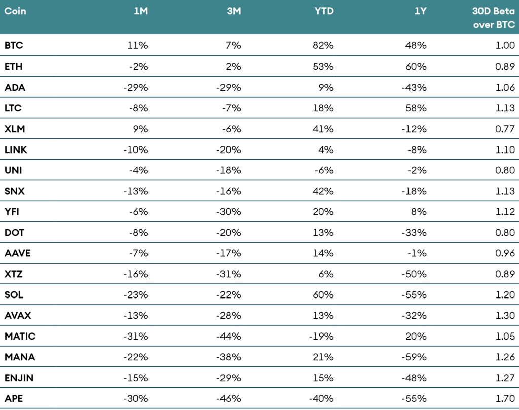 - Ethereum has made notable progress with Consensus and Execution layer upgrades aligned with its roadmap, accompanied by positive on-chain metrics.