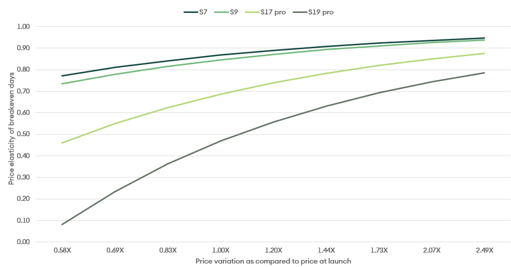 Figure 2: Price elasticity of break-even days