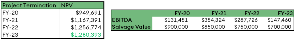 Figure 4: NPV, EBITDA, and Salvage Value