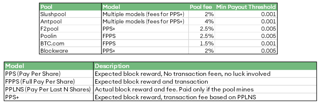 Figure 9 – Mining pools and their payout methods