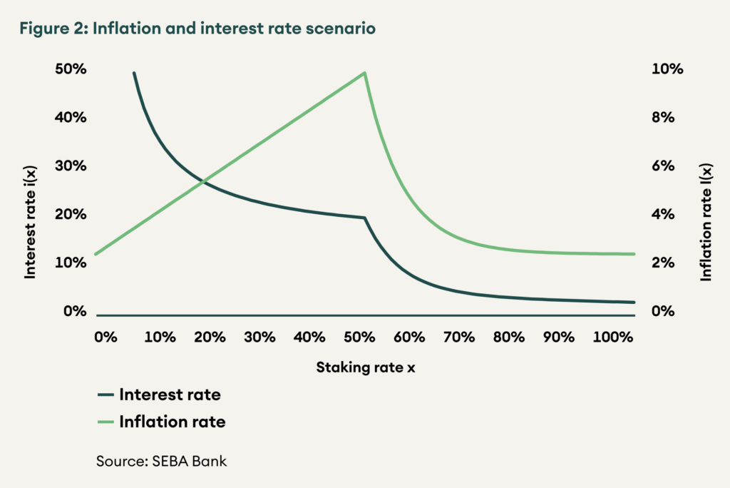 Where x is the staking ratio, I(x) is the inflation rate, i(x) the annual interest rate.