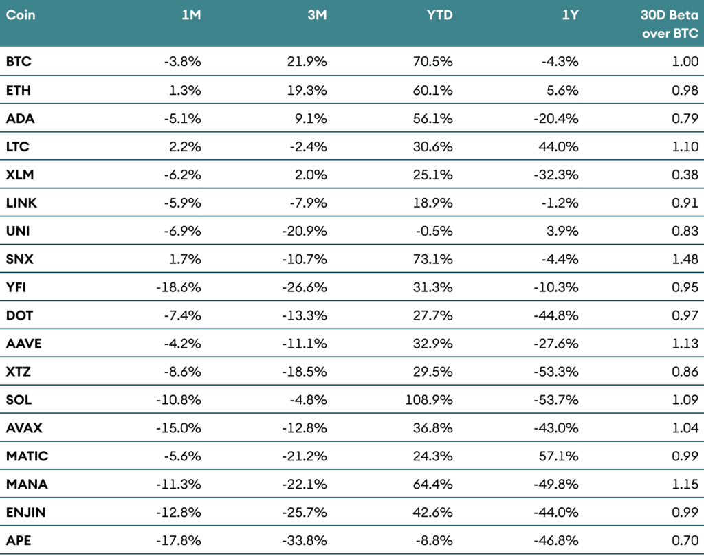 Welcome to June edition of the Digital Investor, where we bring you the most important highlights and updates from the cryptocurrency markets for May 2023. The total crypto market capitalization declined slightly in May. Bitcoin’s rally subsided due to reduced risk in the banking sector and regulatory crackdowns, while Ethereum reached a new milestone, with the total ETH staked reaching an all-time high. Big names like Solana, Uniswap, Aave, and Synthetix made significant strides amidst challenges of a liquidity-starved month. Implementations from Chainlink, which connect Web 2 companies to Web 3, were a considerable development accompanied by Coinbase joining its network of oracle node operators. Metaverse coins, too, showed a lackluster performance, with the market trending lower overall.