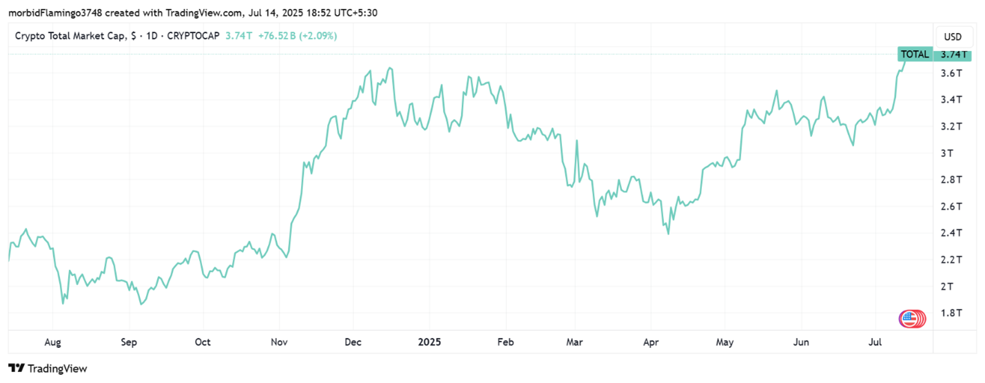 Fuelled by soaring institutional interest, record ETF inflows, and the buzz around “Crypto Week” kicking off in Washington, the OG crypto is riding a wave of optimism. Companies like Japan’s Metaplanet are doubling down — adding another 797 BTC to their balance sheet, bringing their total holdings to a whopping 16,352 Bitcoins.