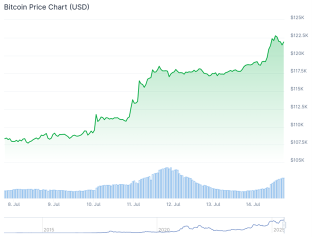 Bitcoin shattered records in early Asian trading Monday, blasting past USD 123,000 and setting a new all-time high — but it’s not the only headline stealer this week.