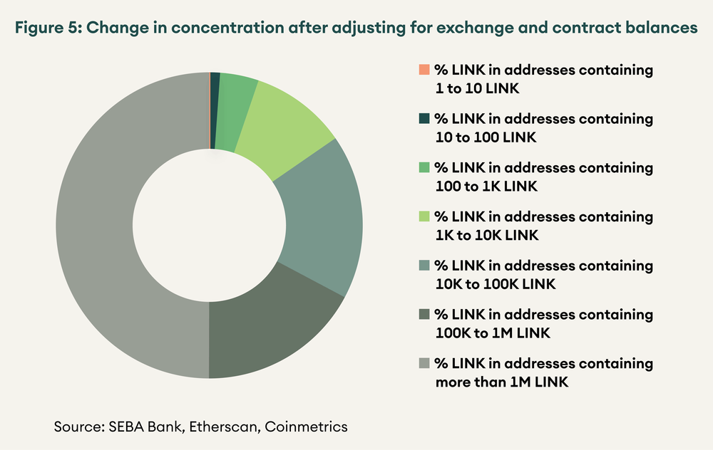 Despite adjusting for exchange and contract balances, LINK token is not very widely distributed. Price action is at the whim on large token holders’ decisions.
