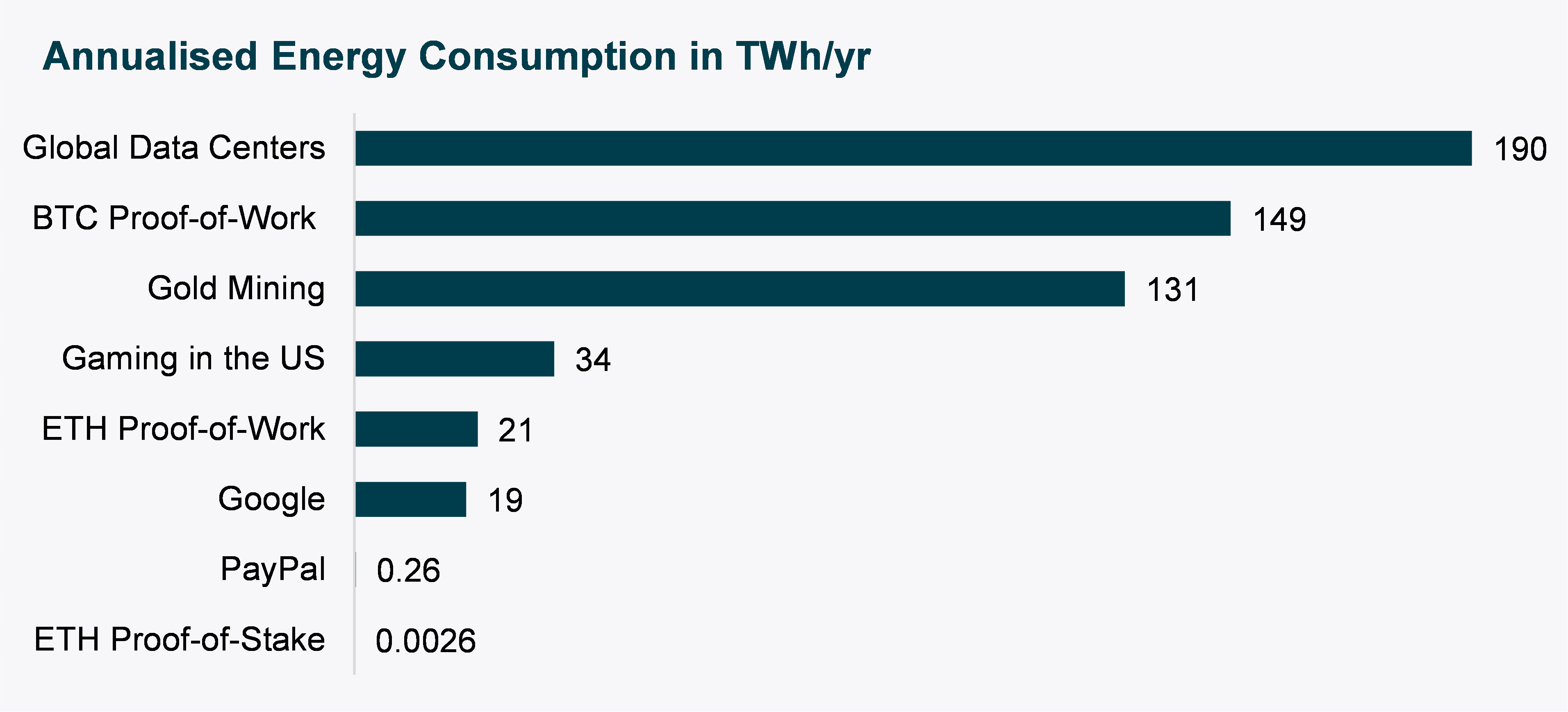 To provide a clearer perspective, the pre-Merge proof-of-work Ethereum consumed 8100 times this amount, while Bitcoin’s consumption remains at 53000 times this level. The payment network PayPal consumes about 100 times this energy amount, estimated at 0.26 TWh/yr.