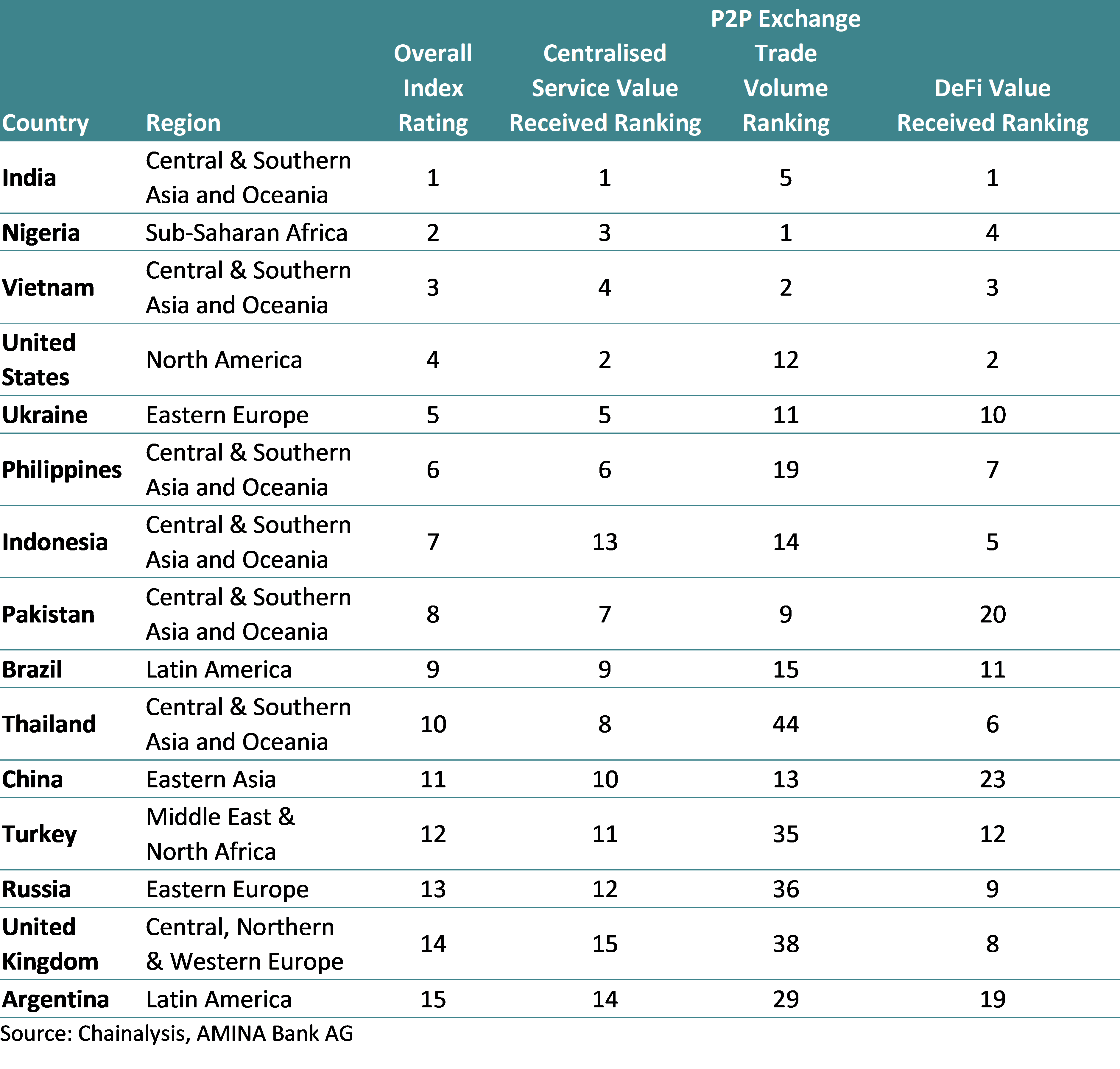 Table 1: Global Cryptocurrency Adoption Rankings