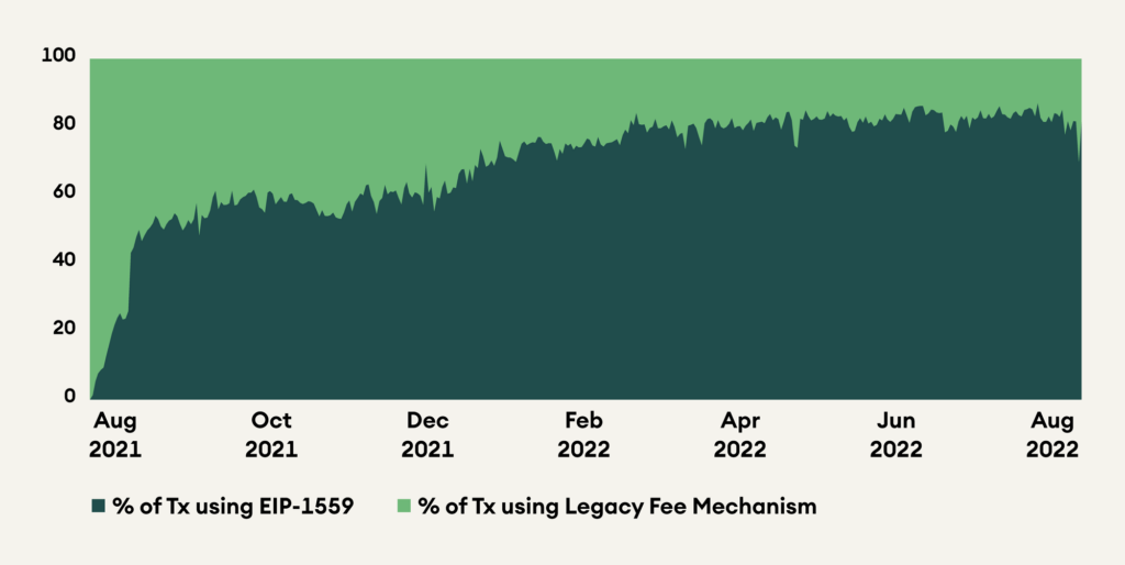 Figure 4: Ethereum transaction type adoption after the implementation of EIP-1559
