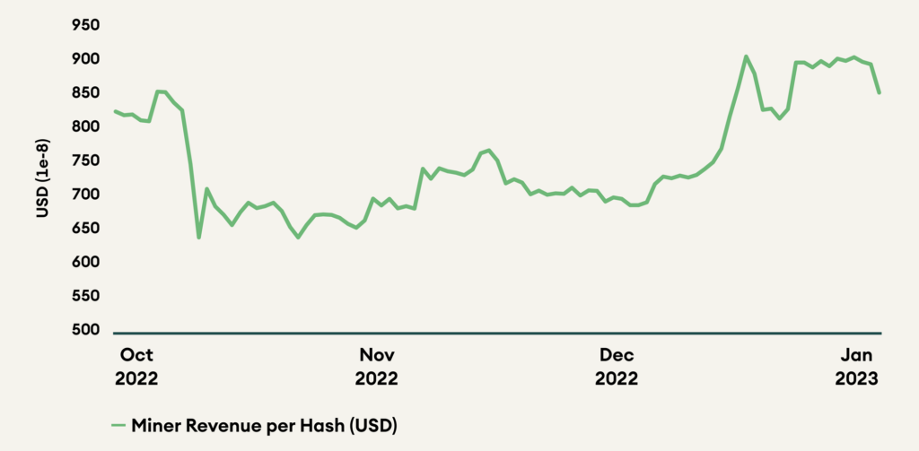 Fig 3: Miner Revenue per Hash (USD)