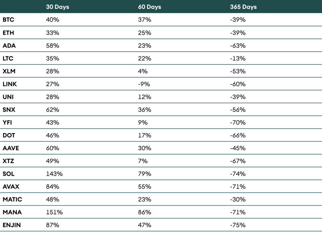 Table 1: Coin Performance