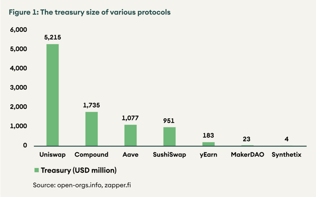 DAOs have come up to coordinate the efforts of governance token holders and manage the protocol to be more effective in tackling the changing needs of the ecosystem. A DAO enable its governance token holders to participate in a voting mechanism to make decisions when the underlying code is silent or itself needs to be changed. The rules of the DAO define the scope, rights and responsibilities of governance token holders. It also establishes the process by which changes can be implemented. For protocols that earn revenue like some DeFi applications or retained some tokens during distribution, the DAO also controls how the treasury is utilised.