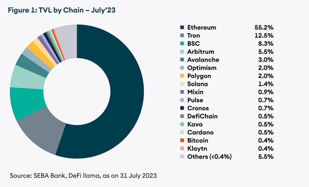 Chart 1: TVL by Chain – July’23 (Source: DeFi llama, AMINA Bank, as on 31 July 2023)