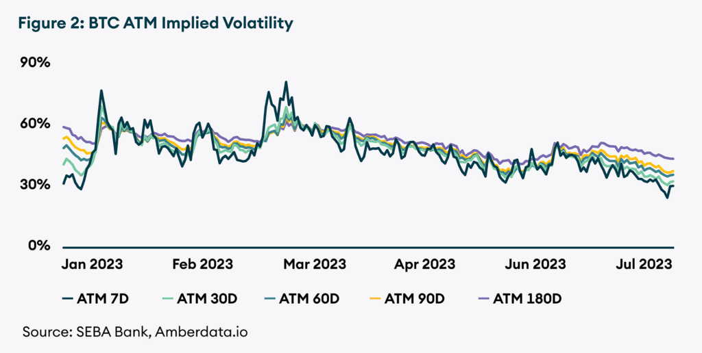 Chart 2: BTC ATM Implied Volatility (Source: Amberdata.io, AMINA Bank AG)