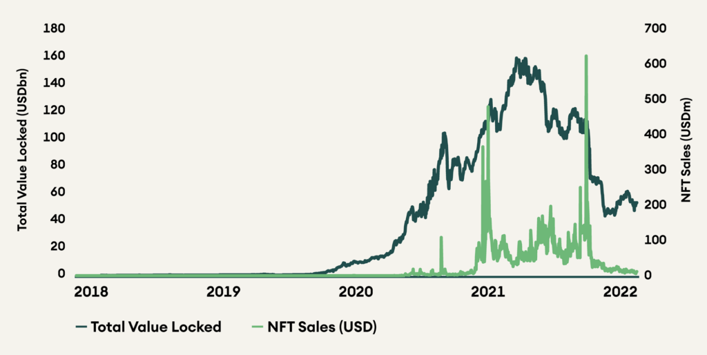 Figure 3: Total Value Locked and NFT Sales Volume on Ethereum