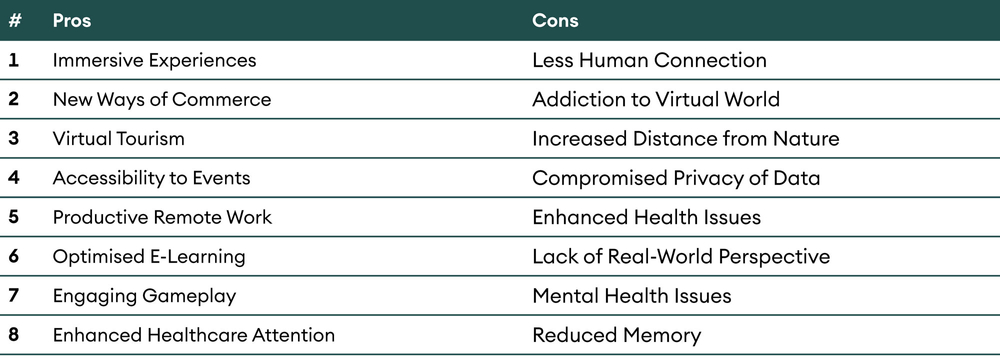 Table 1: Metaverse Pros & Cons