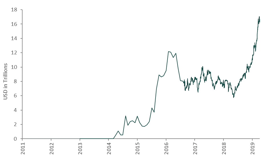 Exhibit 2: Global govt. debt outstanding with negative yielding