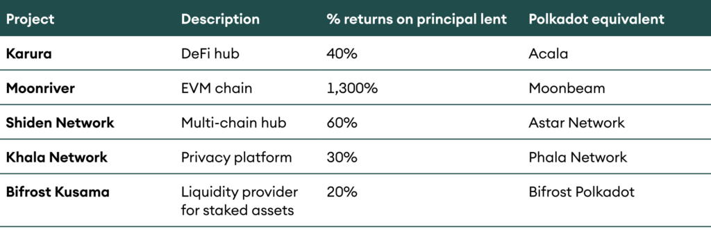 Table 3: Handsome returns on Kusama crowdloans have investors excited for the upcoming ones on Polkadot
