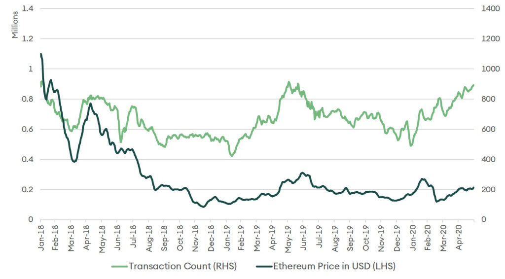 Figure 5: Ethereum daily transaction count and daily price