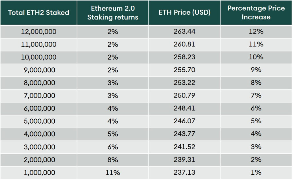 Table 1: Possible price impact of Ethereum 2.0 staking on ETH