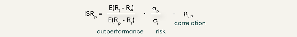 To capture the maximum improvement in the Sharpe ratio is equivalent to get the highest ISR. Ideally, the additional asset has a high expected return R(i) to increase the outperformance, a low volatility sigma(i) and a low or negative correlation rho(i,p). While digital assets do not fulfil all three criteria, they improve the Sharpe ratio thanks to outperformance and low correlation.