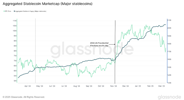 Figure 2: Crypto stablecoin marketcap witnessed a sudden leap in November 2024 following the results of the US Presidential election.