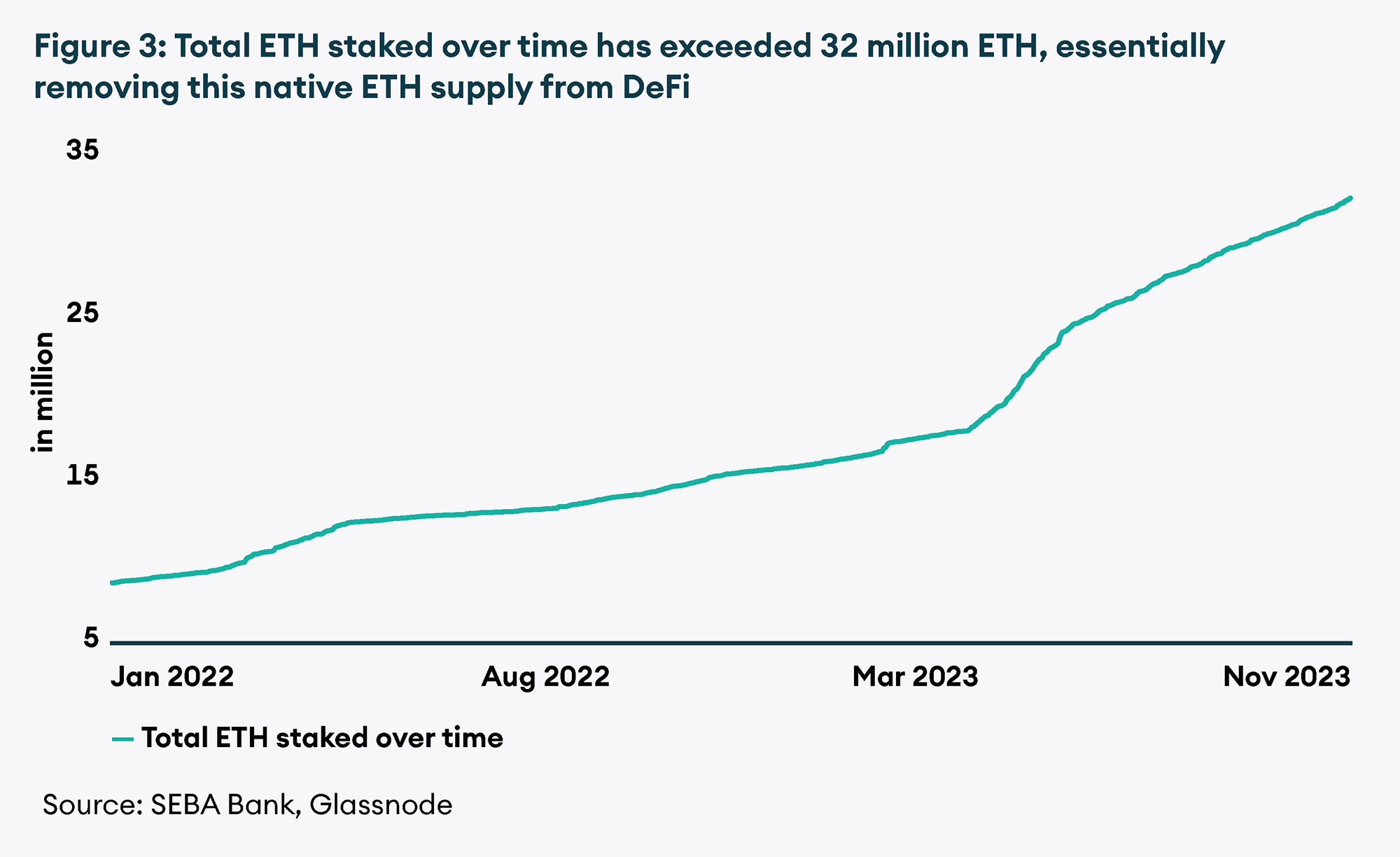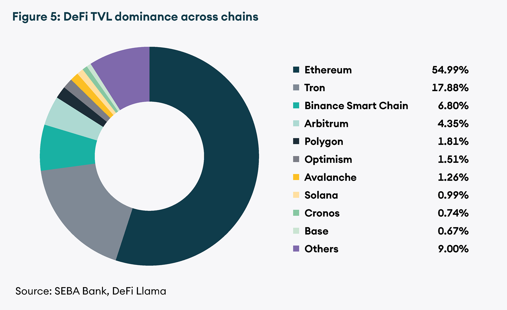 Furthermore, the NFT market has shown relatively limited demand, with the Total Value Locked (TVL) on NFT marketplaces and lending protocols, as reported by DeFi Llama, amounting to less than USD 300 million out of the total USD 43 billion in DeFi TVL at the time of writing. Due to this lack of activity on DeFi and in NFTs, the utility demand for ETH as a gas token dropped drastically. Perhaps the most influential factor appears to be the ascendancy of Ethereum layer-2 solutions (L2s). According to L2 Beat, TVL on L2s has soared by over 180%, increasing from USD 4.4 billion in January to approximately USD 12.7 billion at the time of writing. L2s offer significantly faster transactions at a fraction of the cost, prompting users to migrate from the Ethereum Mainnet to L2s. Worth noting is the implementation of EIP1559, which introduced (in August 2021) a burn mechanism for the base fee in ETH, potentially rendering ETH deflationary in the long run. Given that L2 fees are substantially lower than on the Mainnet, the leap in L2 adoption has resulted in a reduced burn of ETH and an effect more akin to disinflation than deflation, with ETH’s current inflation rate standing at 1.159%.