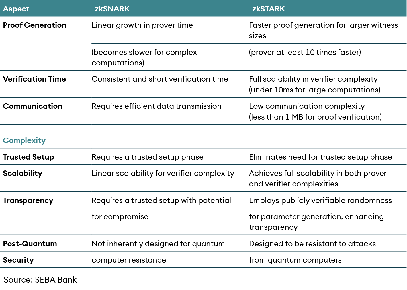 Transparent: Unlike ZK-SNARKs that require a trusted setup, ZK-STARKs employ publicly verifiable randomness for generating public parameters, enhancing transparency, and reducing reliance on centralization.